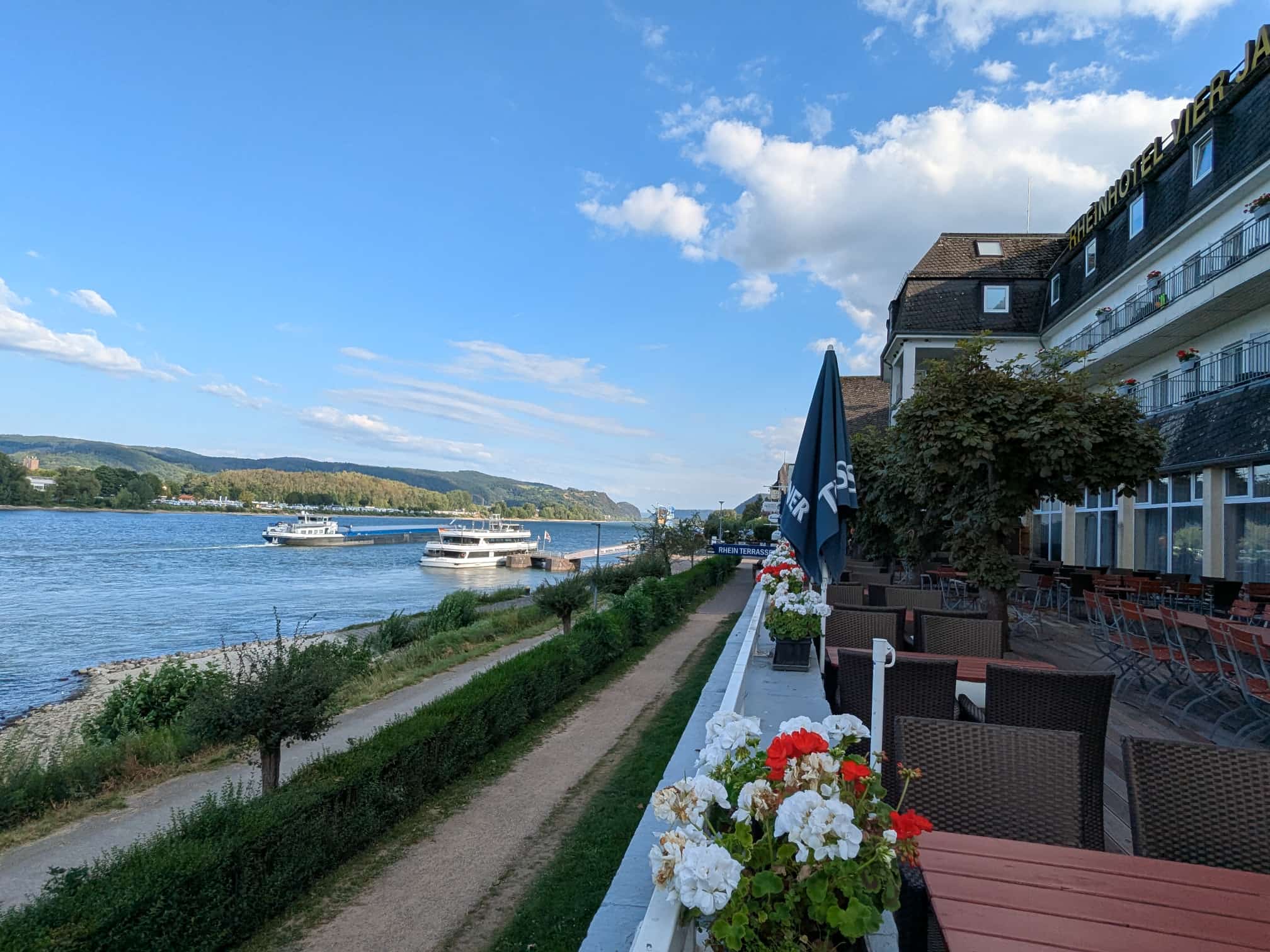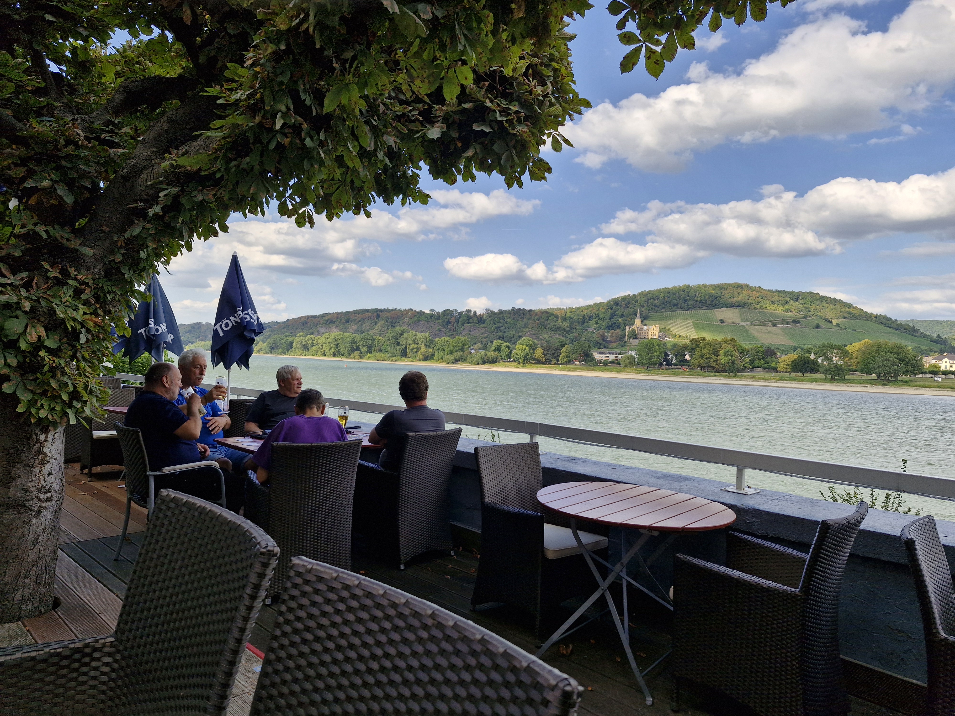 Nach einem kurzen Tankstopp bei Oberlahnstein schlängelten sich die Maschinen am Rhein entlang – eine Traumstrecke für jeden Biker. Am späten Nachmittag war das Ziel erreicht: das „Rheinhotel“ in Bad Breisig. Knapp 320 Kilometer standen auf der Uhr, die Bikes verschwanden brav in der Tiefgarage, und die Fahrer verteilten sich auf Sauna, Schwimmbad, Rheinpromenade oder Terrasse – je nach Lust und Laune. Bier inklusive, versteht sich.