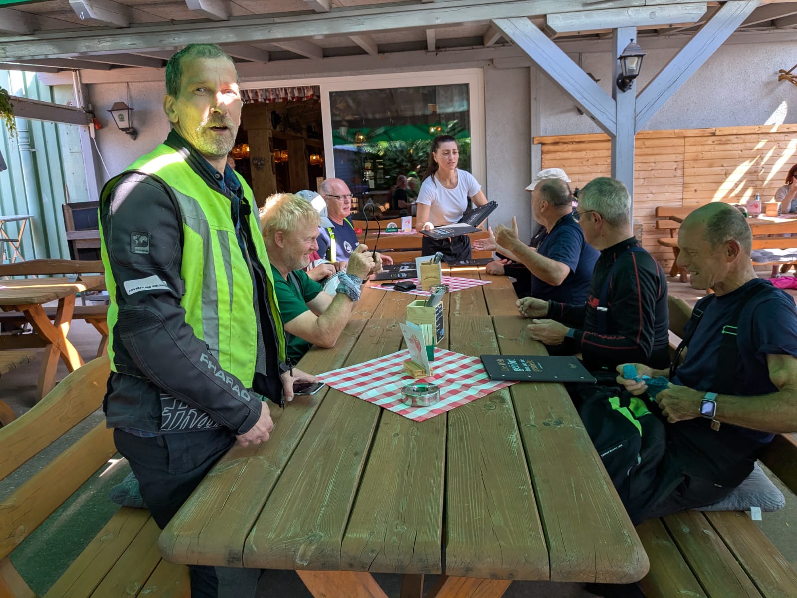 Zum Abendessen gab’s schließlich ein Wiedersehen mit den Eifel-Bikerfreunden Bernd, Fischli, Lutz und Sigmar, die die Kochertäler herzlich begrüßten. Gemeinsam wurde noch gefachsimpelt und die Touren für die nächsten Tage geplant – natürlich bei gutem Essen und in bester Laune.
