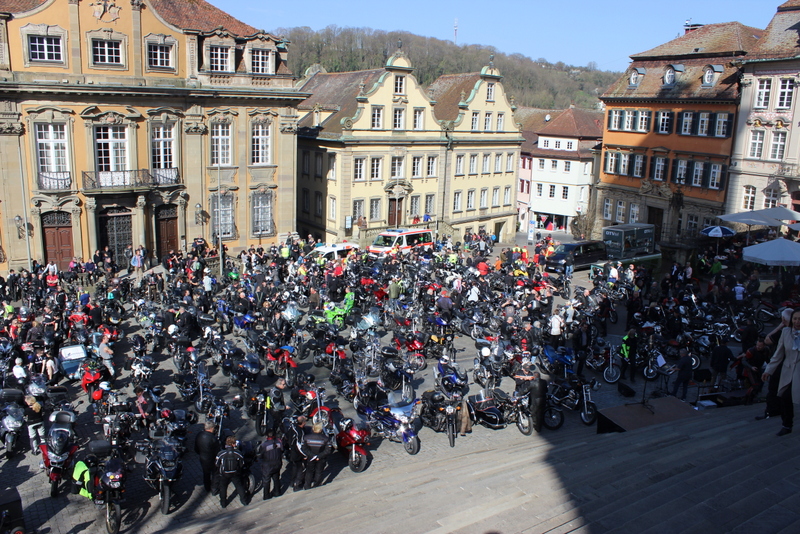 Kirche, Kreisverkehrswacht Schwäbisch Hall sowie das Polizeipräsidium Aalen haben eingeladen. Deshalb machten sich ein paar Bikerinnen und Biker der Motorradfreunde Kochertal e.V. am Sonntag 08.04.2018 von der Tankstelle in Unterrot auf den Weg an die Treppe der Michaelskirche nach Schwäbisch Hall, wo der diesjährige Bikergottesdienst stattgefunden hat. Bei strahlendem Sonnenschein waren laut Presseberichten über 1000 Biker nach Schwäbisch Hall gekommen.