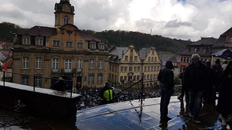 Treffpunkt für die Motorradfreunde Kochertal zur Ausfahrt zum Biker-Gottesdienst an die Treppe vor der Michaelskirche nach Schwäbisch Hall am Sonntag, 28. April war an der Tankstelle in Unterrot um 10:00 Uhr. Anwesend waren anfangs nur 3 Biker. Rainer kam zwar noch mit seinem Roller dazu, aber nur zum Cappuccino trinken in der Tankstelle. In Schwäbisch Hall waren vom Verein dann noch ein paar mehr Mitglieder die direkt angereist sind.