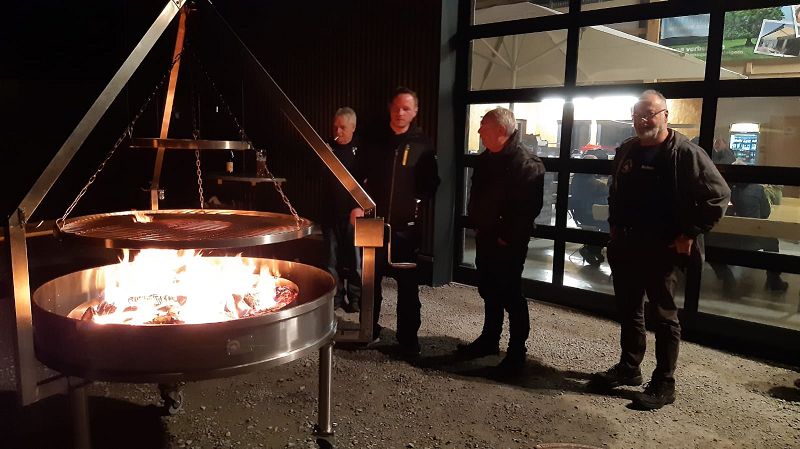Festliche Enthüllung Die Motorradfreunde weihen beim Stammtisch ihre neueste Anschaffung – den Schwenkgrill – ein.