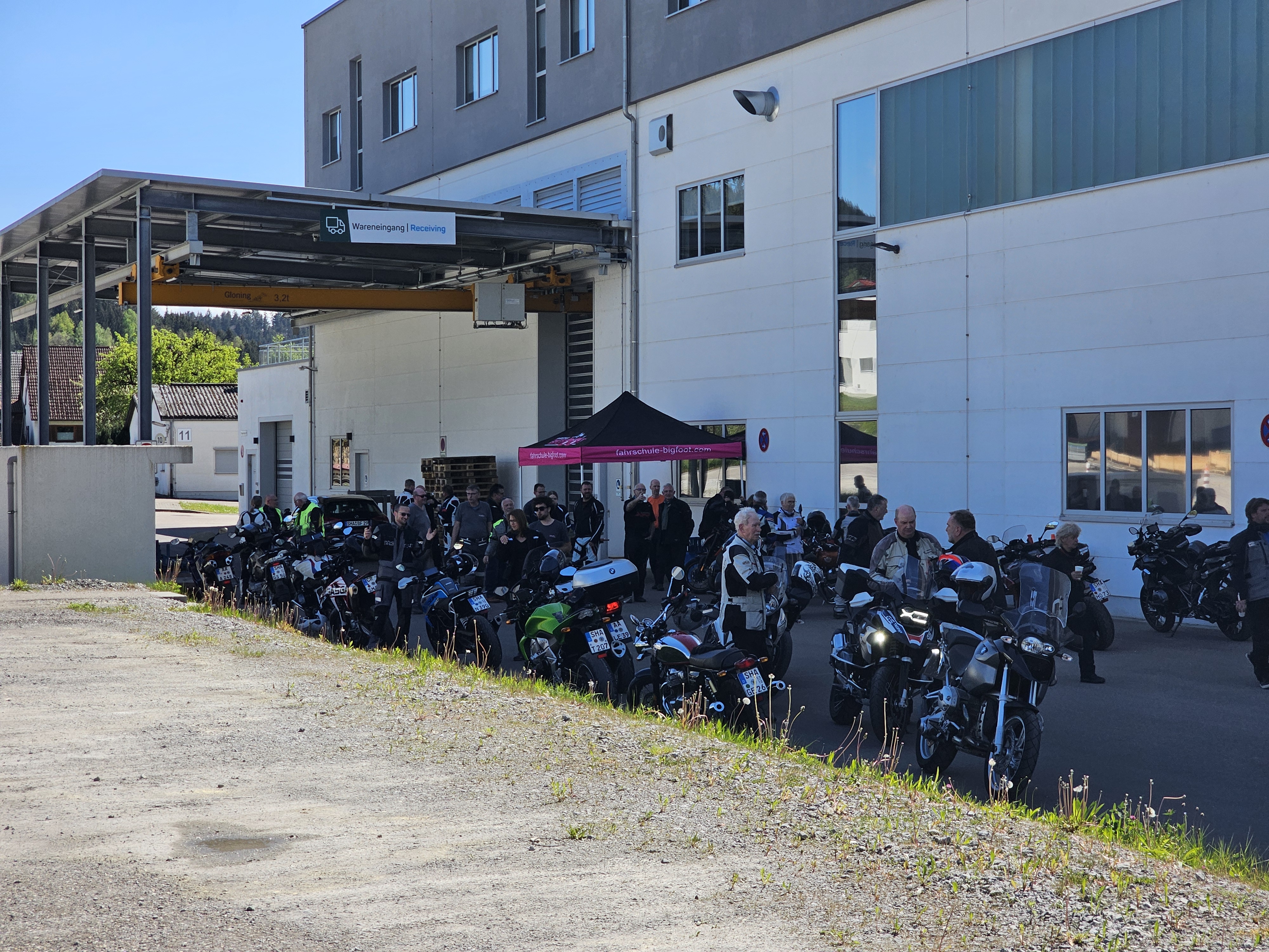Pünktlich um 13:30 wurden die Teilnehmer gesammelt durch Harald Dörfer im Auftrag von Dieter Brucker nach Laufen auf den Parkplatz der Firma Rommelag geführt, wo sie schon von den Fahrlehrern der Fahrschule Bigfoot erwartet wurden.